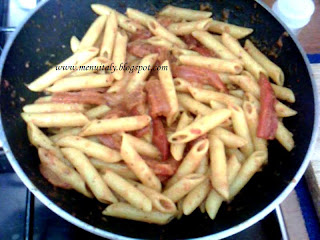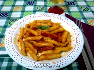 4. Passati i minuti per la cottura, scolare la pasta e aggiungere nella padella con il sugo dei peperoni, pepare al momento, mischiare bene et voilà ... le penne con il meraviglioso profumo sono pronte