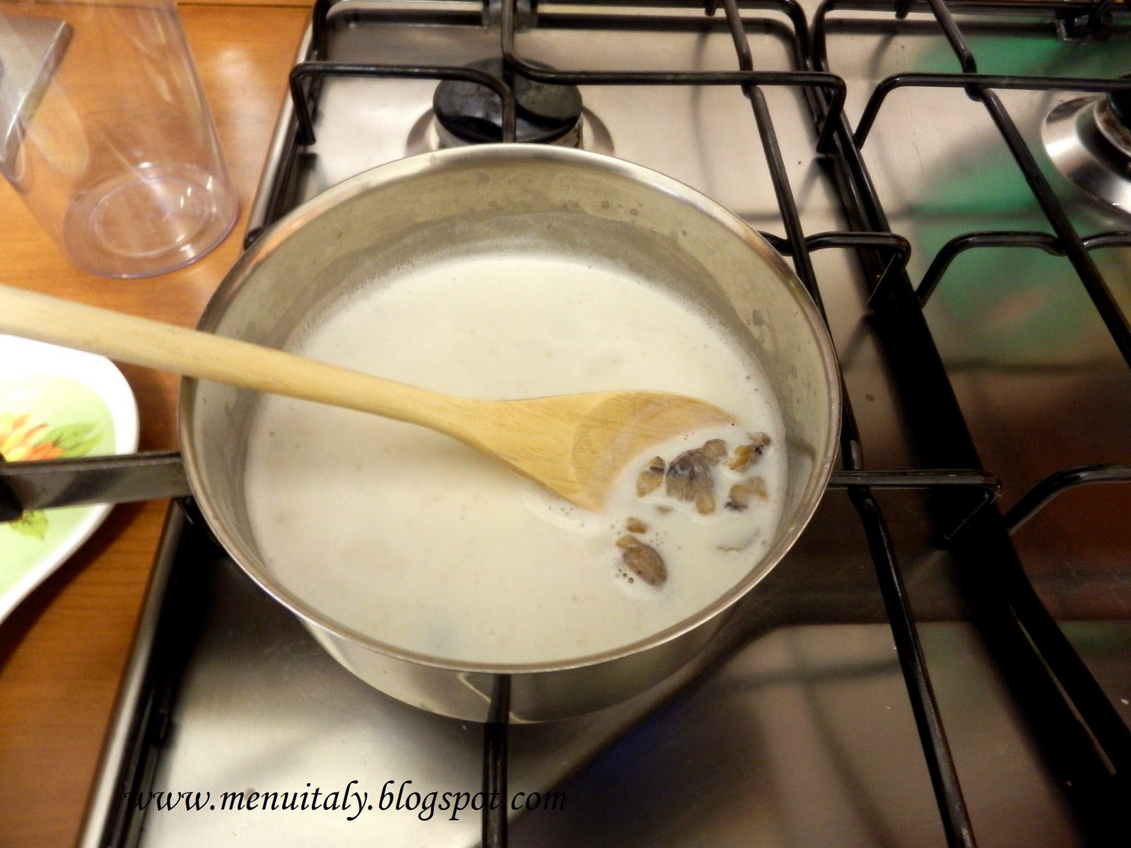 Portare ad ebollizione un pentolino con il latte e le castagne cotte e spezzettate. Cuocere a fuoco medio alto rimestando di tanto in tanto fino al completo assorbimento del latte.