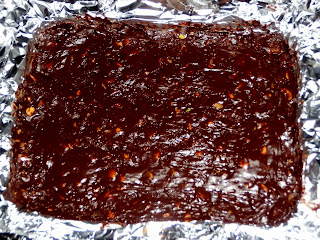 4. Rimuovere con attenzione il simil torrone dalla teglia (prendendo i bordi del foglio d’alluminio) e con un coltello affilato tagliare a quadrati.