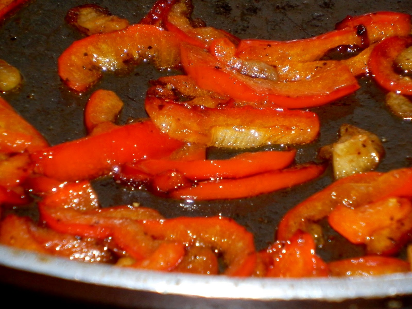 4. Nel frattempo in un altra padella far stufare i peperoni precedentemente tagliati a listarelle.