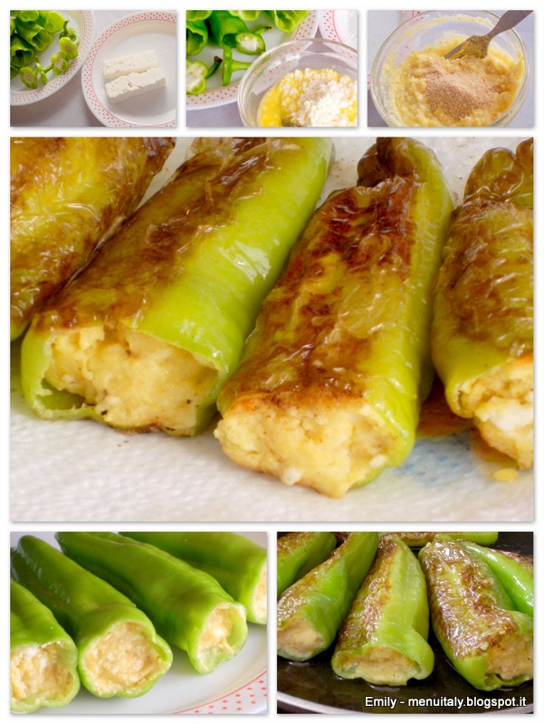 Secondo piatto o piatto unico: Peperoni friggitelli ripieni di formaggio "alla macedone".
